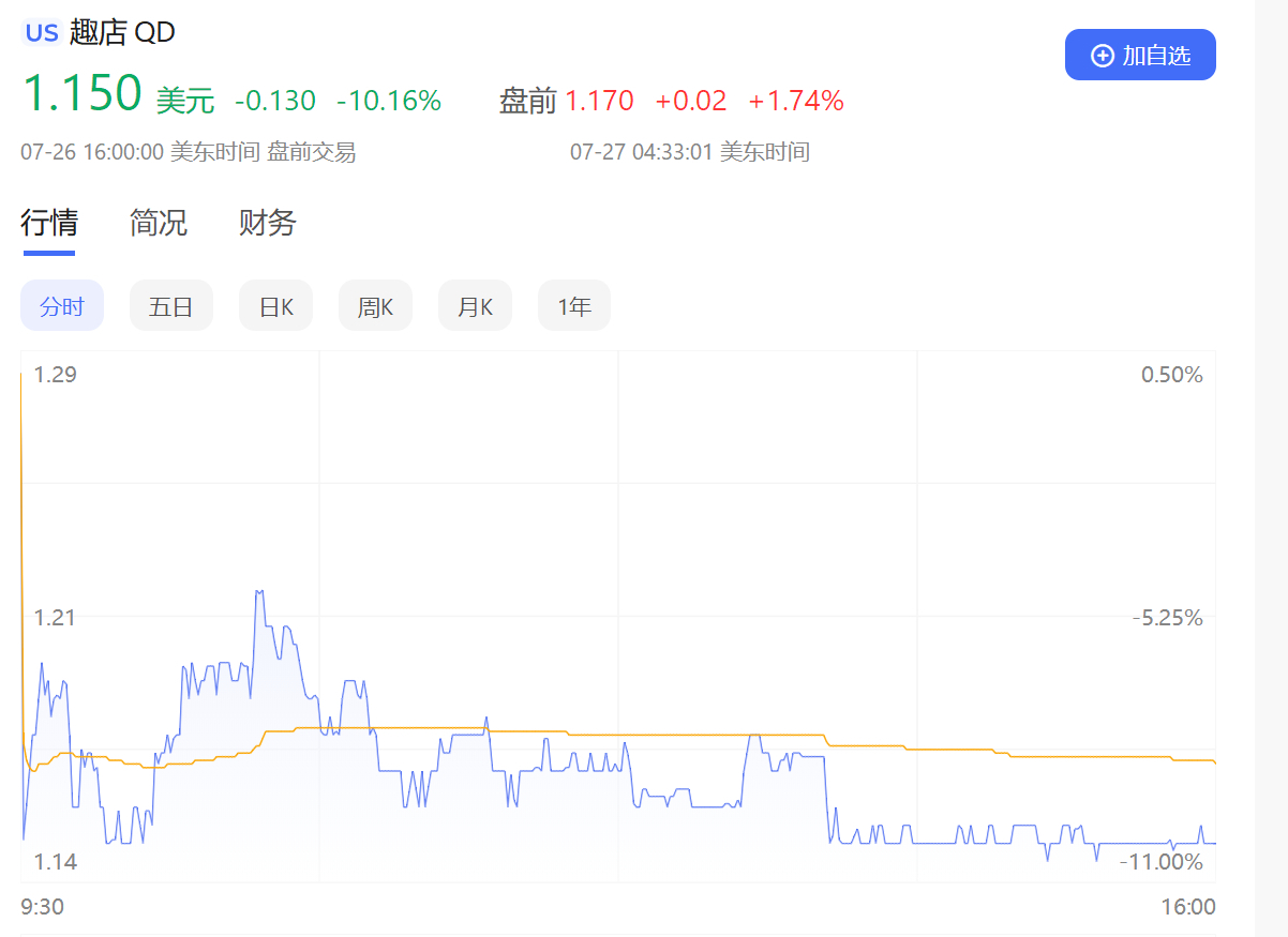 在资本市场方面,相较于7月18日冲高至2.18美元之后,趣店股价已经大幅回调。截至美东时间7月26日收盘,趣店股价报收1.15美元,跌幅为10.16%。
