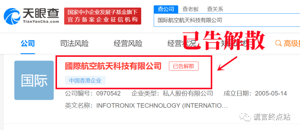 这家被套牌的“国际航空航天科技有限公司”居然“已告解散”!