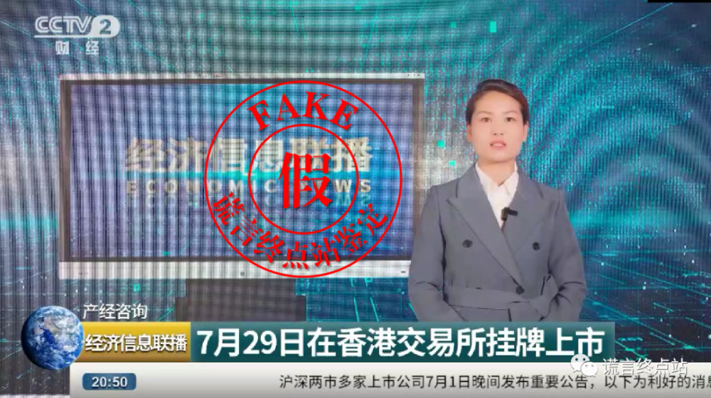 (2)7月29日香港上市,根本子虚乌有,所谓CCTV2的“新闻视频”是假的,自行剪辑而成;