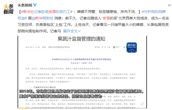 2021年,新华社记者伪装成应聘者打入“奈雪的茶”内部,发现:蟑螂不用管、标签随便换、抹布不洗等各种问题。