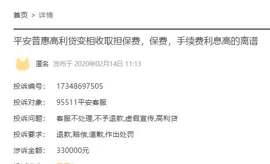 变相收保费、高额手续费、被贷款 平安普惠金融遭投诉