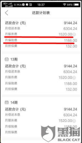 从他提供的还款信息来看,每月还款9144.24元,其中有1520元服务费,占比近17%;保费1188,占比近13%。也就是每月30%左右的还款金额与利息和担保费并无关系。