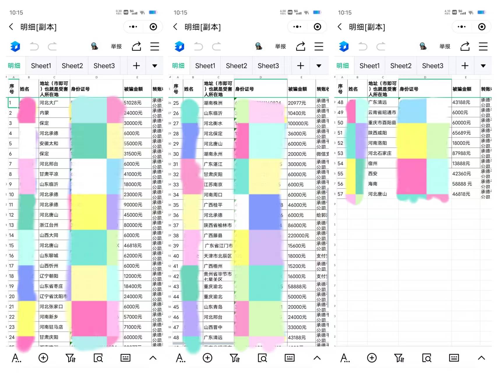 求助者提供给我们一份整理好的受害者名单,我们可以发现受害者们遍布不同的城市,人数之多,金额之巨大让人震惊。受害者们已经联名授权北京进行报案,并提供了相关的证据资料。但据我们了解,”七哥“团队依旧还在以各种名义敛财,并未对其造成任何影响。