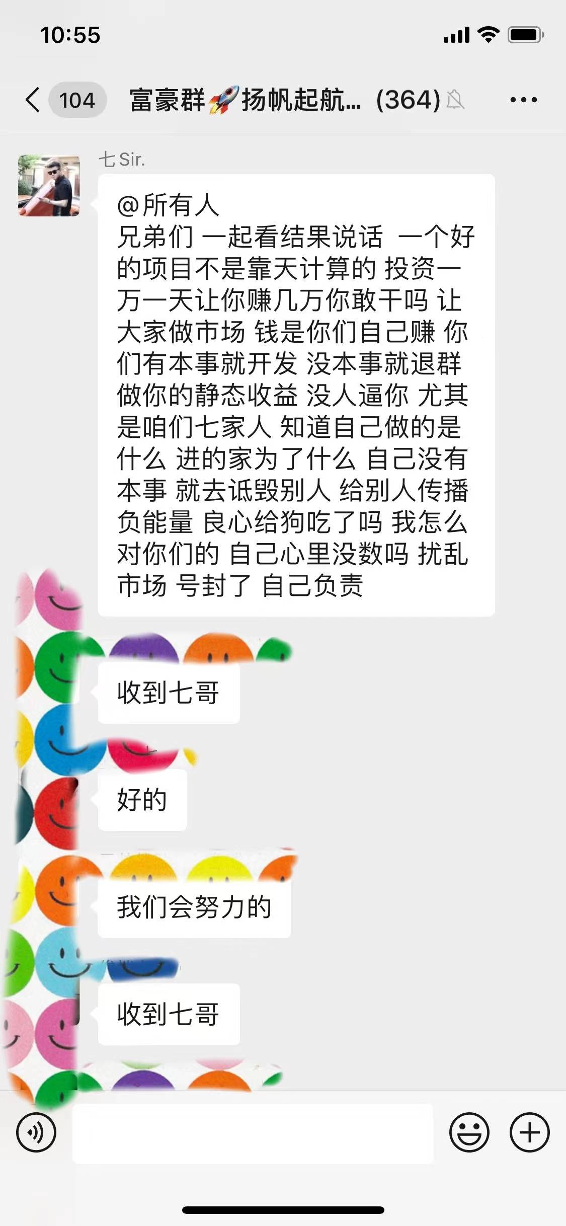 后来他会鼓吹说要买卖木耳二号,一号只会越来越值钱,结果就是一号变二号之后就没买卖过,不了了之。这个金点赞就持续2个月,平台直接自动关闭。直到2020年疫情,他找借口说碰到疫情,交易所不能正常交易,让所有人耐心等待,结果这一等便是一年多。群里已经没人敢说话,只要有人进行质疑或者提问,就会直接被踢出去,最后,微信群全部解散。
