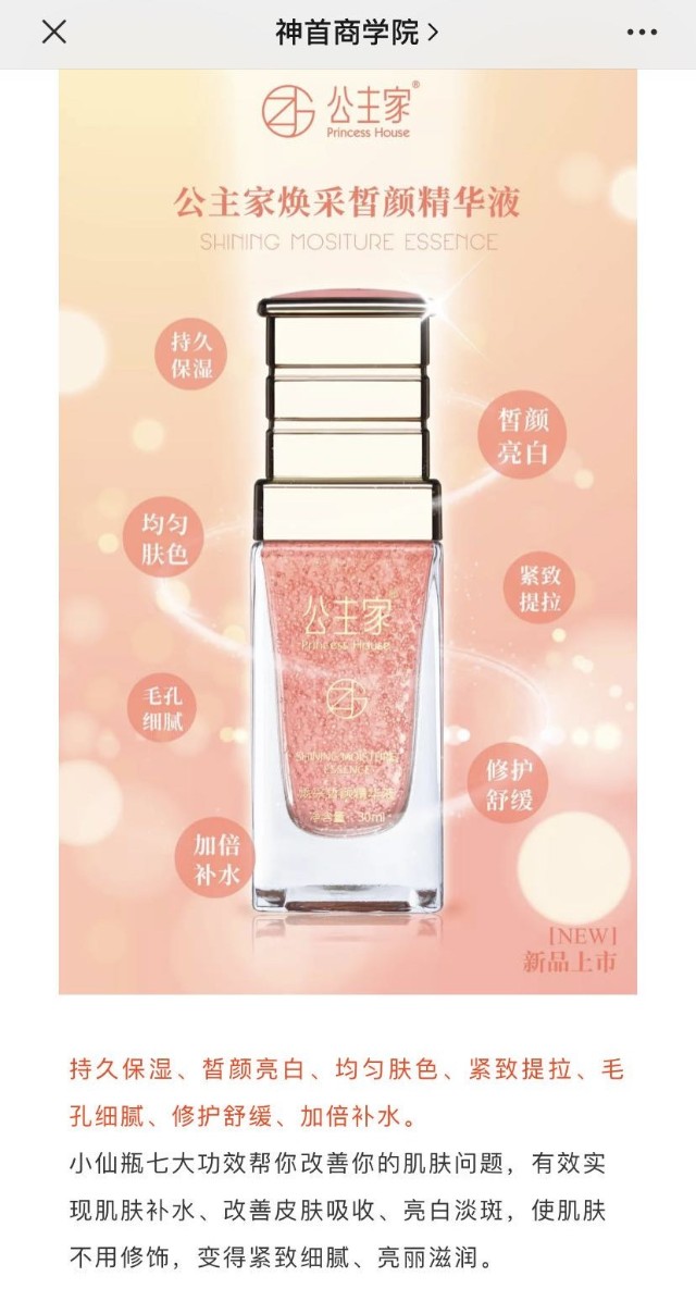 关于神首集团及旗下产品涉嫌的虚假宣传,清扬君在以往的连载文章里已多次提及。本文再介绍两款涉嫌虚假宣传的公主家化妆品。