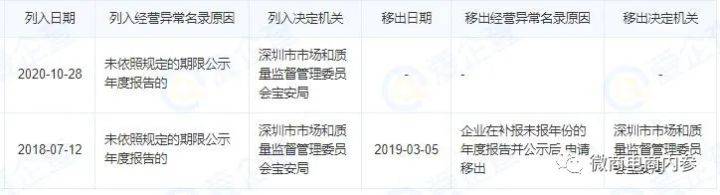 经查,李园举弟目前还是深圳市炮爷电子商务有限公的股东之一,而该公司在2020年10月28日已因未依照规定的期限公示年度报告被深圳市市场和质量监督管理委员会宝安局列入经营异常名录,至今未被移除。