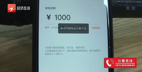 郑先生表示,“销巴生活”现在不仅是在“拼秒杀”一个业务板块不能正常返现,此前参与其它购物活动在平台充值的钱,现在同样不能正常提现。郑先生打开自己在“销巴生活”的平台账户,显示还有二十多万的余额,记者看到近期他操作的几笔提现都没有到账,现在他反复输入提现金额进行操作,便跳出提示“单日可提现总次数不足”。