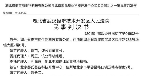 从2014年下半年开始,麦吉丽老板郭苗与“北京郝氏基业科技开发中心(该公司注册资本仅三万元)”合作,以480元/公斤的价格购买“胶原素”原料,再分装成35ml/瓶(约35克)的产品后对外销售。2015年6月,麦吉丽灌装的产品出现变质,从而与北京郝氏产生了纠纷。
