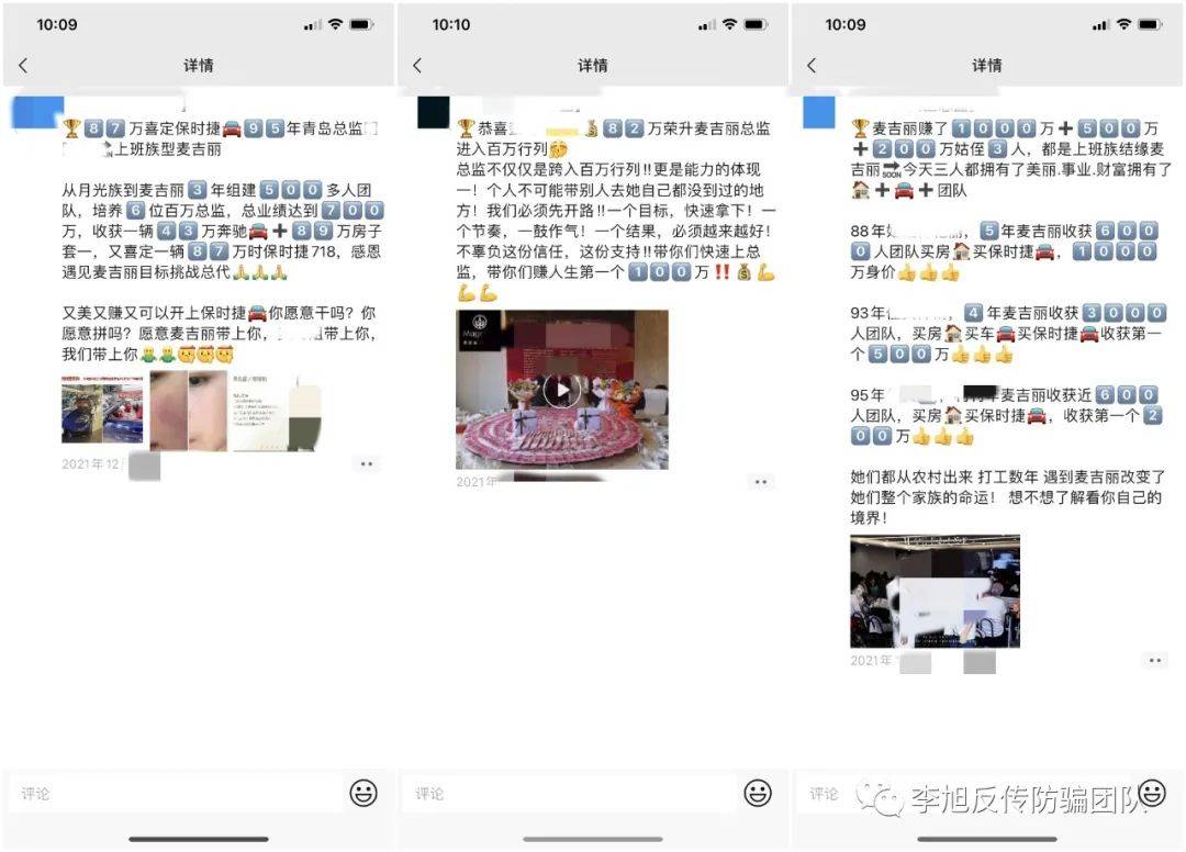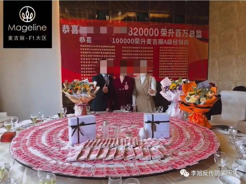 在这些视频中,都会配合出现一沓沓的钞票,在麦吉丽核心总代群里,其他人都在刷屏庆祝新总监的晋升。