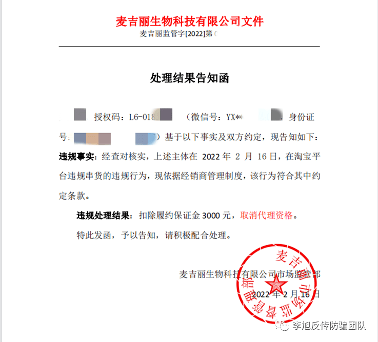 这是一封求助邮件的开头。2022年4月初,网友小敏给李旭反传防骗团队发邮件反馈,自己参与麦吉丽已经有七八年时间,因为朋友圈发其他的广告,被麦吉丽公司处罚被克扣押金12万元。