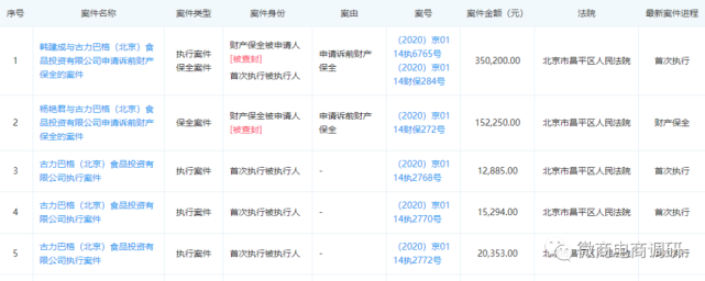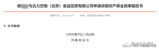 当时间来到2020年6月时,财产保全案件相继发生,据《杨某某与古力巴格(北京)食品投资有限公司申请诉前财产保全民事裁定书》显示,申请人杨某某向法院提出申请诉前财产保全,要求冻结被申请人古力巴格公司银行存款152250元或查封、扣押同等金额的其他财产,法院予以执行。