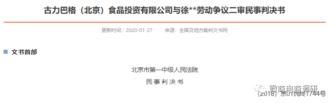 劳动争议可以说是古力巴格遭受质疑的开端,据《古力巴格(北京)食品投资有限公司与徐某某劳动争议二审民事判决书》显示,一审法院认定事实:徐某某于2015年4月7日到古力巴格公司工作。同日,古力巴格公司与徐某某双方签订了《劳动合同书》,自2016年2月起,古力巴格公司未足额给徐某某发放工资。