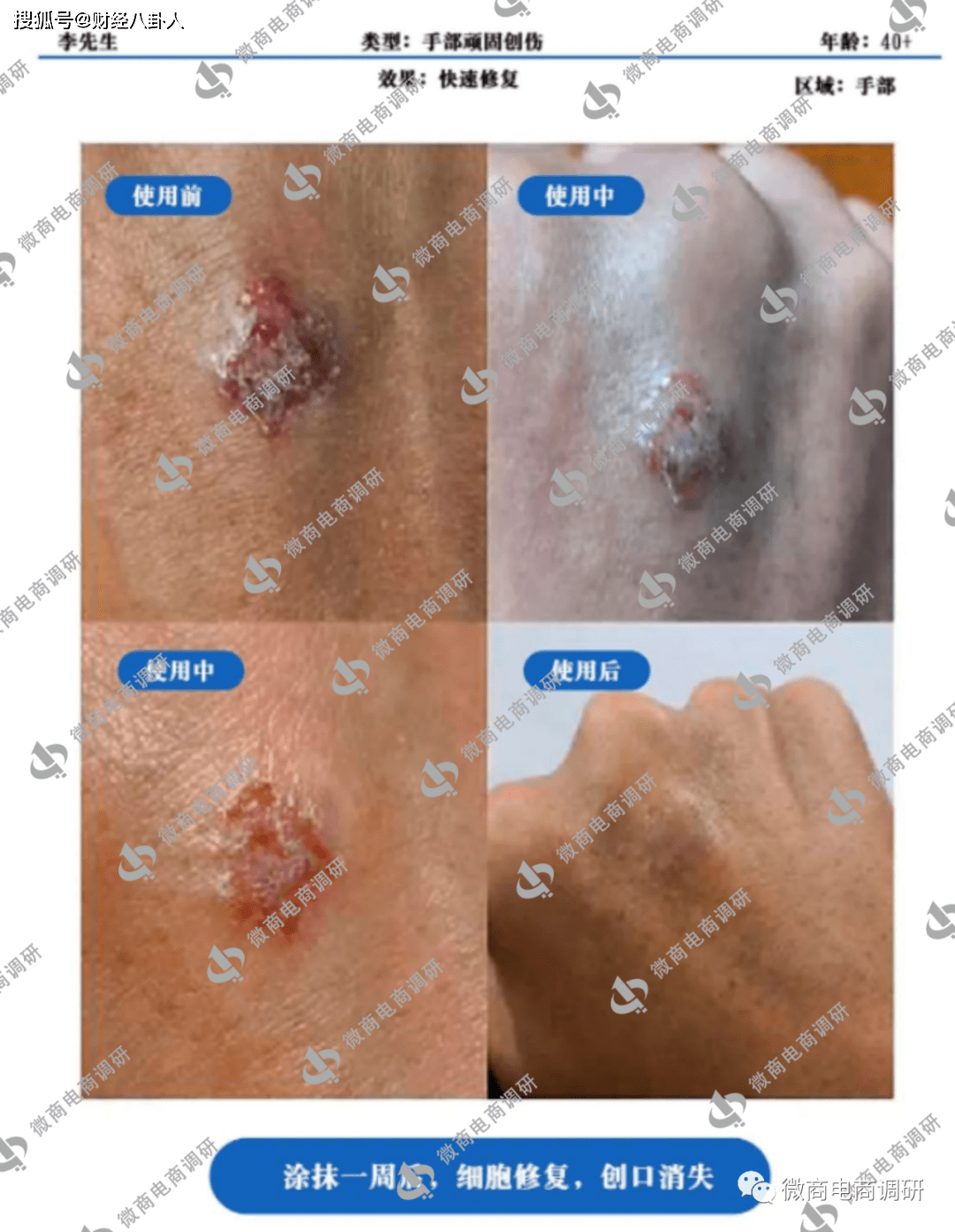 为了证明这款产品具有医疗作用,一些个人公众号还通过晒出案例的方式指出该产品具有治疗“脚部顽固创伤”和“手部顽固创伤”的效果。