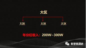 当你成为大区的时候,恭喜你可以拿分红了,那当你培养三个市场,每个市场出现一个大区的时候,你每年的市场分红大约有200至300W。