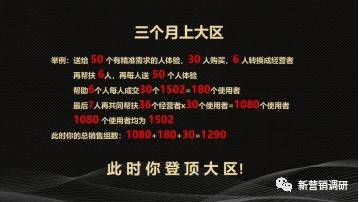 接下来你和6个伙伴,共同帮助这36个人,筛选出来她们身边的有效资源,帮助她们每人成交30个使用者,此时你的团队又多出来1080个使用者