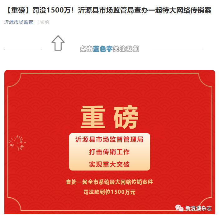 日前,新浪潮杂志曾以《被冻结7千万仍高调宣传,翰林金业团队部分来自涉传平台?》为题,对翰林金业因涉嫌传销被立案调查一事进行报道,引起广泛关注。近日,沂源县市场监管局一篇推文对此案结果进行“官宣”:沂源县市场监管局打击传销工作实现重大突破,查处淄博市场监管系统最大一起网络传销案件,罚没款到位1500万元,并作为市场监管系统唯一区县局在全市打击传销工作推进会上做了经验交流。