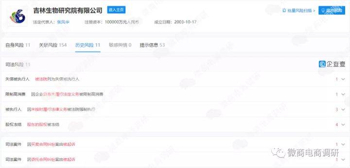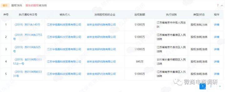 事实上,朱华却不像宣传的这样光鲜。朱华收购的吉林生物研究院有限公司于2018年11月15日因企业借贷纠纷一案,未按要求履行给付义务,被法院列为失信被执行人,法院对单位采取了限制消费措施,限制单位及法定代表人张凤华不得实施高消费及非生活和工作必需的消费行为;法院实施了7次股权冻结措施:冻结日从2019年1月22日至2022年1月21日的100万,冻结日从2019年3月7日至2022年3月6日的51000万,冻结日从2019年4月29日至2022年4月28日的51000万,冻结日从2019年11月13日至2022年11月12日的845万,冻结日从2019年7月25日至2022年7月24日的51000万,冻结日从2021年5月31日至2024年5月30日的51000万;2018年又一次因与福建九州通医药有限公司企业借贷纠纷案由被起诉;2020年因与长春北湖科技园发展有限责任公司租赁合同纠纷案由被起诉。