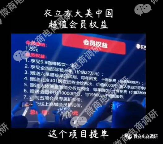 缴纳1万元便可成为会员,其权益主要包括全面部除皱一年;六早癌症早筛试剂40支,每年4支,10年免费;北京301人民解放军总医院远程会诊2次;人体细胞分析仪预检,每年4次,10年免费。