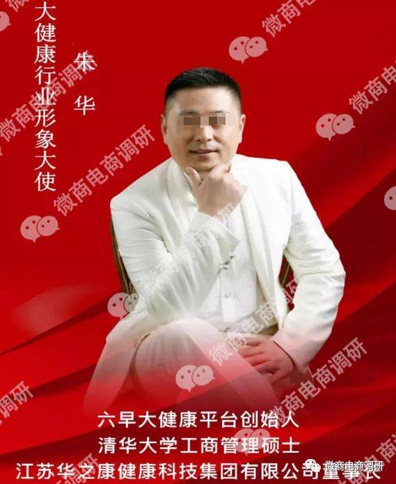 据介绍,朱华是六早大健康平台创始人,江苏华之康健康科技集团有限公司董事长,2000年进入医疗领域,成为东芝彩超唯一五省代理并连续15年彩超销量全国第一;2014年进军大健康,收购吉林生物研究院,担任研究院董事长,并将其研发的高科技产品——肿瘤风险尿液检测试剂,并命名为“六早试剂”,将其推向全国;2017年,开创大健康S2b商业模式,开始六早在民用市场的布局;2018年,推出“千城万店”项目,完善供应链和产业链;2019年,全面启动远程医疗,并于年底在100多个地区成立运营中心;2020年,拓展高端医疗资源、健康产品和服务,深度建设全生命周期的大健康平台。截止2020年底,已在全国成立400多家运营中心,拥有各类付费会员10万余名。