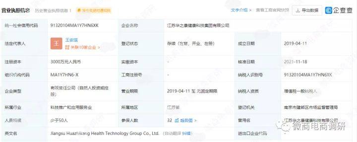 而代理商们大力宣传的“衣立方”的公司主体是杭州汇美商业控股有限公司,这家公司成立于2021年8月2日,法定代表人为陶锐,实际控制人也是江苏华之康的最终控制人王安琪,注册资本为500万元人民币,根据微商调研的深入调查,发现原来衣立方背后也是江苏华之康健康科技集团有限公司,而江苏华之康的老板并不是王安琪,而是一个叫朱华的人。