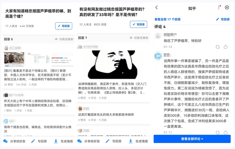 正如成都新都区人民政府文章中提及的一样,市面上除了“芦笋植萃”这样的产品,也有着艾灸产品以及关联产品,在打着健康的旗号,背后却做着骗人的勾当。