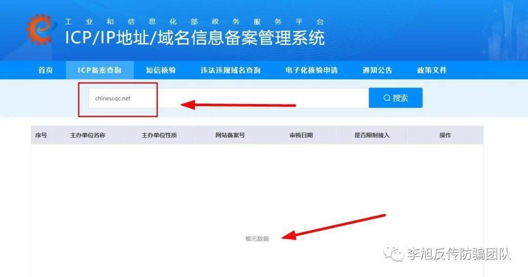 通过工信部政务服务平台ICP/IP地址/域名信息备案管理系统官网,我们甚至都没有查询到该网址的备案信息。