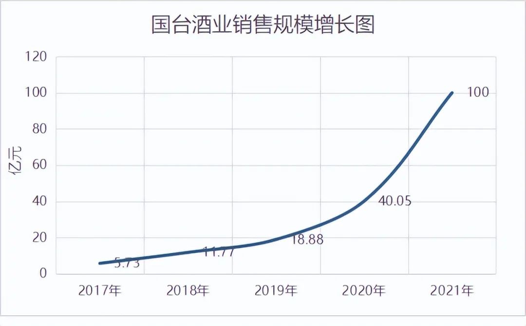 公开数据显示,2017年-2020年,国台酒业分别实现总营收5.73亿、11.77亿元、18.88亿、40.05亿。在1月9日举办的“2022年全国经销商代表大会”上,国台酒业披露,公司2021年含税销售额跃升至百亿规模。