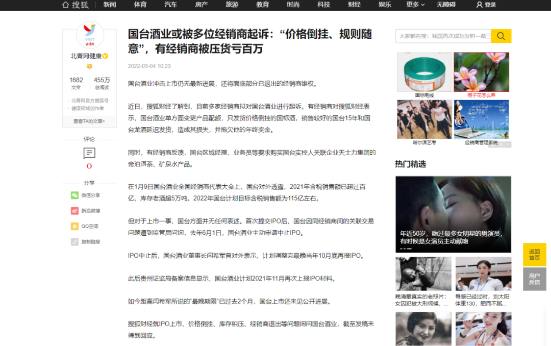 2021年底,国台酒业宣布,未来4年将“不增量、不压货、不涨价、不招商”。然而,进入2022年后,因为“不挣钱”,不少商家还是退出国台经销商行列,但随之也产生了大量纠纷,因为利润返还、年底奖金发放、国台酒部分品种短缺等诸多问题,3月份部分经销商与国台对簿公堂。