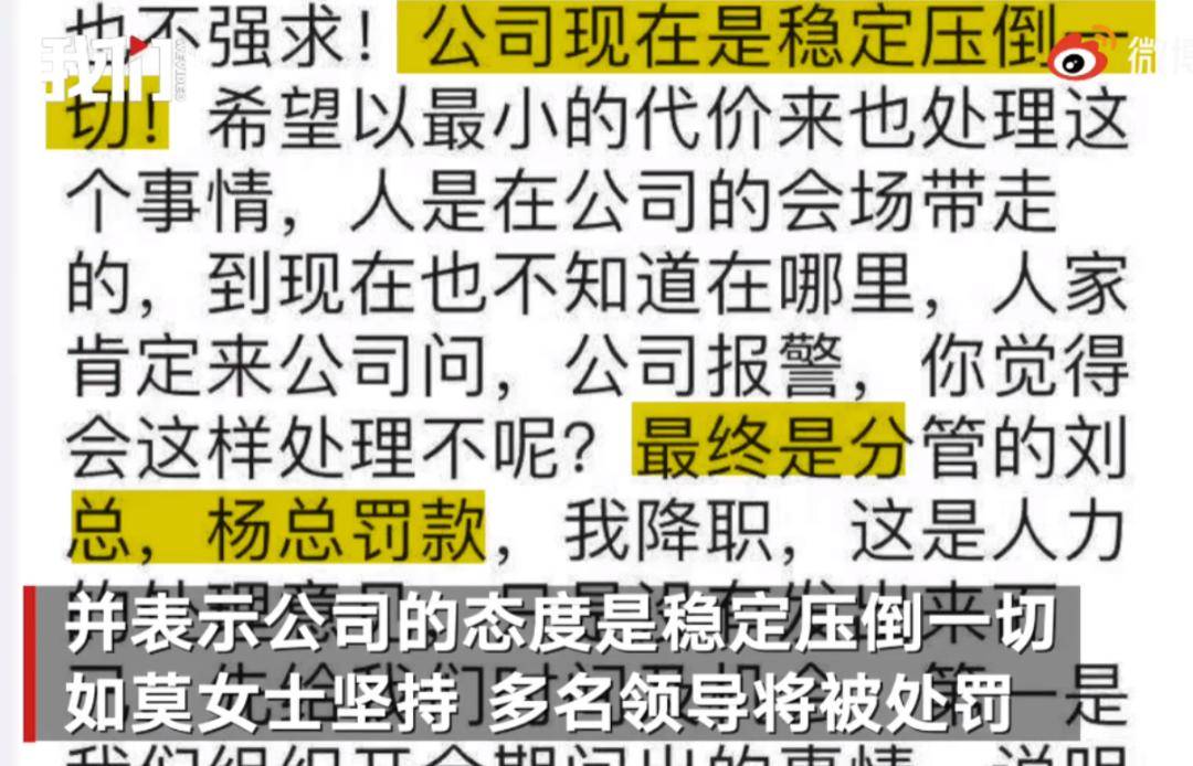 “其实我很看重这份工作,所以当时想隐瞒下来,不让其他任何人知道。”莫女士告诉红星资本局,现在选择向媒体爆料,是因为“自己需要一个公道。”