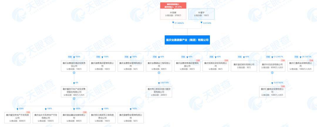 重庆业嘉逸安酒店有限责任公司实际控制人名叫叶圣辉,除了逸安酒店,他还实际控制了渝豪酒店、圣辉酒店(已注销)。此外,叶圣辉名下还有2家物业公司、1家房地产开发公司、1家小额贷款公司。