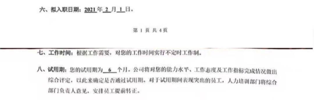 莫女士发给红星资本局的录用通知函显示,莫女士于2021年2月1日,入职国台销售公司,试用期为6个月。