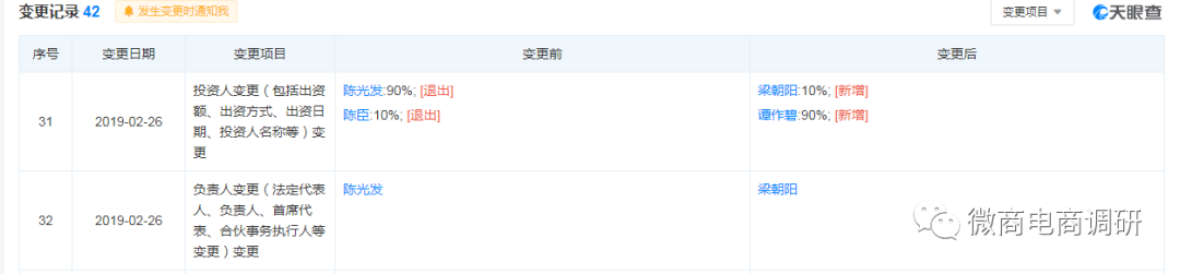 茅泉酒业的法定代表人变更从股权变更的信息上看,2019年2月26日,茅泉酒业公司的法定代表人由陈光发变更为梁朝阳,相关出资人及股份也一同变更。从梁朝阳工商信息上看,与肆拾玖坊高管存在合作伙伴关系,由此可以分析,肆拾玖坊正是此时开始收购了茅泉酒业公司。