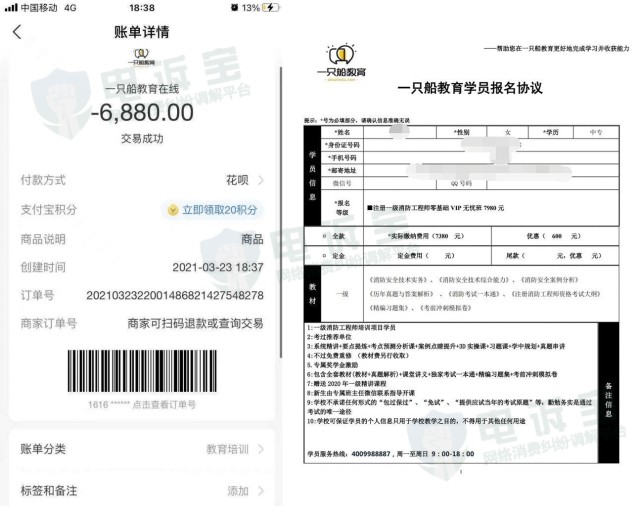 学员反映辅助报名挂靠等操作不合法 欲退款“一只船教育”仅退9000元