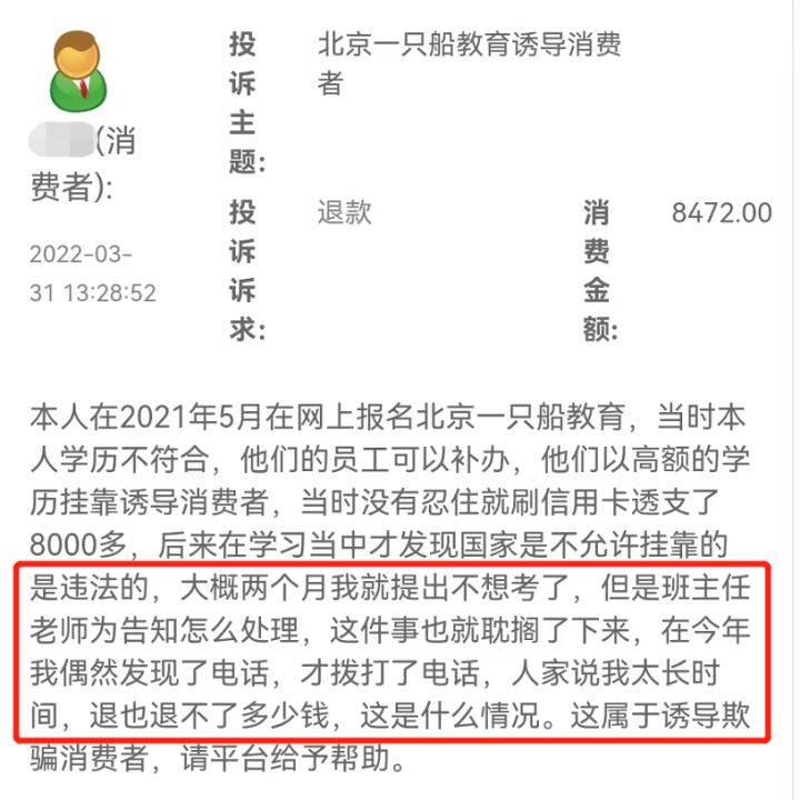 这么多的虚假宣传,肯定有露出马脚的时候,面对学员的质疑,一只船教育则会通过各种霸王条款拒绝退回学费。