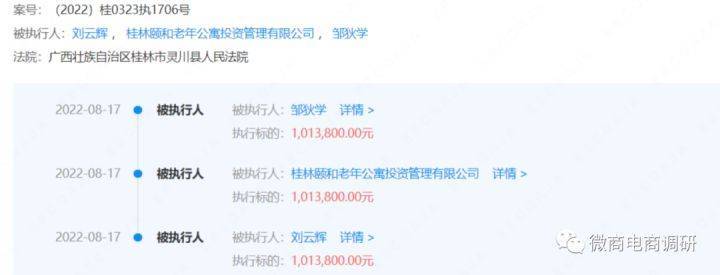 在本次执行案件中,刘云辉便和桂林颐和老年公寓投资管理有限公司一同沦为了被执行人。