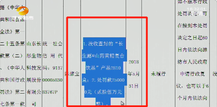 另外,潍坊市市场监督管理局曾分别于2017年和2019年对“长生露”生产企业——山东长彤生物科技发展股份有限公司进行过处罚,并对产品进行了销毁和查封。