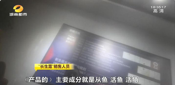 “长生露”销售人员:就滴了几个小时长生露,他本来在重症监护室一直是休眠的昏迷的,第二天上午,他老爸就开始要水喝,可以说话了,很神奇,就开始要吃流食了,到第三天,直接出院了。到第十五天的时候他可以下地,下菜园里找菜了,自己可以做饭吃了。