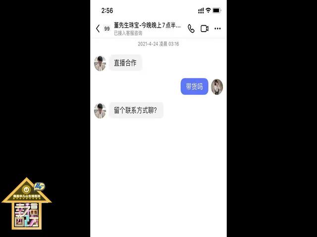 郭芙蓉说,自己是一名带货主播,在平台上销售玉器,今年的4月24号,一位名称是“董先生珠宝”的用户联系到她,表示希望与她合作。刚开始,她还有些将信将疑,可点开对方主页,发现有1800多万粉丝后,便顿时将疑惑打消。“我看他也不是娱乐主播,也不是无聊网友,就是一个带货的,我们也是刚好做带货,然后我就留了联系方式。留了以后他就跟我聊,他说他每个月带货都上亿。”