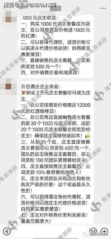 2020年12月30日,云仓酒庄与广州万豪酒业有限公司达成战略合作。由云仓酒庄负责雷盛红酒的销售,以批发价销售红酒,线下体验、线上下单,还称只需要花费1000元,就可以躺赚几万元,“让红酒更实惠,让创业更简单”。那么事实真的如此吗?微商电商调研展开了调查。