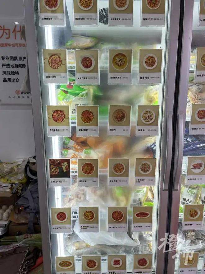 把大坨冰块铲干净后,小倩把冰柜里成袋的糖醋里脊、小酥肉、水煮肉片等预制菜菜品,按名称依次整理好摆放,“估计明天来的顾客会多一点,提前整理出来。”