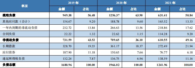 红星控股2019年-2021年负债总额概况,数据来源:联合资信《红星美凯龙控股集团有限公2022年跟踪评级报告》