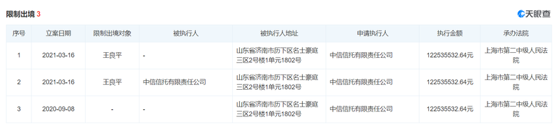中信信托成立于1988年,注册资本为112.76亿元,公司法人为李子民。公司曾经有8次被列入被执行人名录,天眼查显示,中信信托当前被执行总金额为6516.79万元。公司目前共3次被限制出境,相关执行金额约1.23亿元。![]()