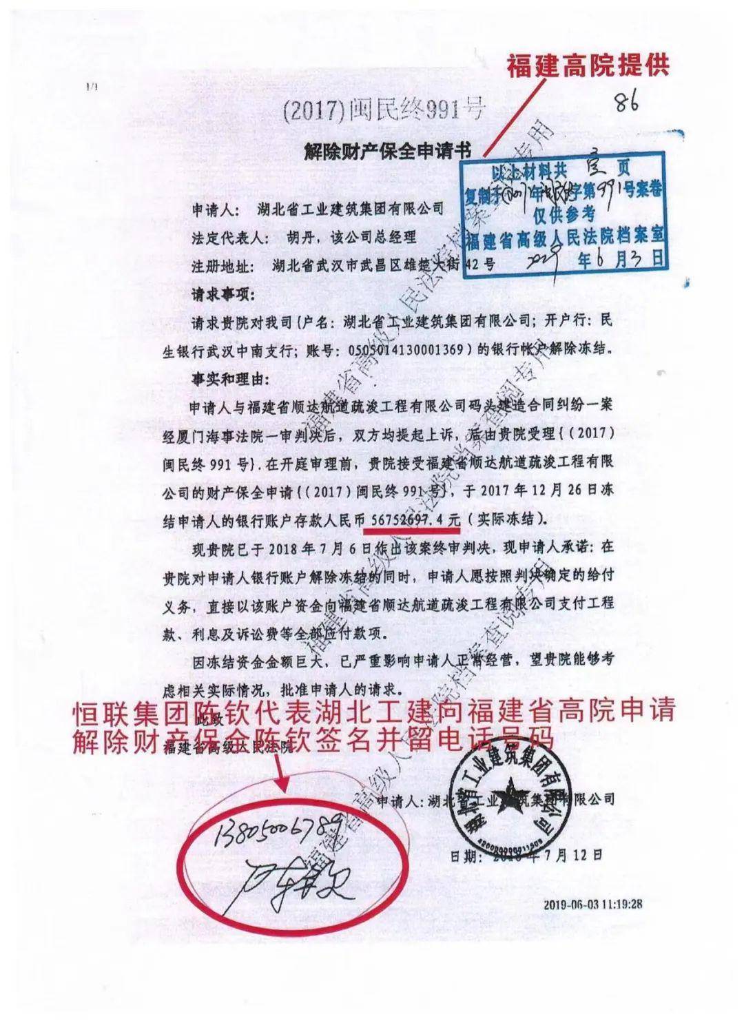结果,陈钦将案件上诉至福建省高级人民法院后,不仅自己的恒联集团向法院提供虚假的质证意见,而且还代表湖北工建向法院提交事实虚假的答辩状。最终导致福建高院主审法官屁股坐歪,违反客观事实和法律判决冯珠茂败诉。