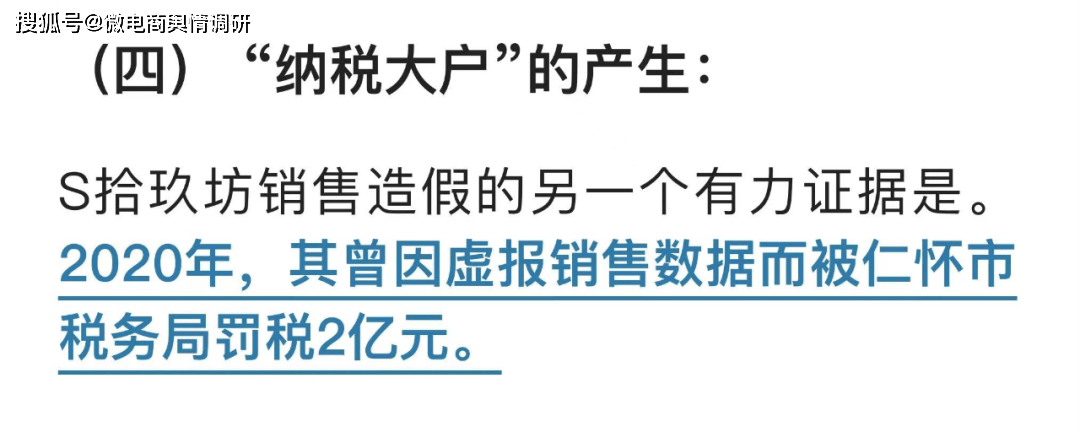 肆拾玖坊在销售业绩方面存在数据造假行为,并且通过夸大业绩的方式,对投资者进行估值欺诈。在前述研报中,肆拾玖坊“2020年曾因虚报销售数据被仁怀市税务局罚税2亿元”的信息,成为龙图咨询指证肆拾玖坊销售业绩造假的关键证据。