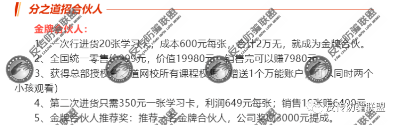 从分之道合伙人推广的模式来看,要想取得网校课程的销售权和分享权,就得投资,再通过招商、推荐和分享等方式来发展新的会员,从中获取相对应的奖励,这种形成上下级别,拉人头的行为明显与我国现行的法律法规相违背。更不用说在宣传中使用的几个月回本的信息,更是有误导消费者的行为。