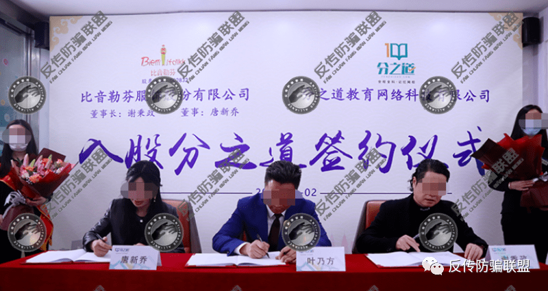 从官网发布的资料,2020年4月2日,分之道教育网络科技有限公司和比音勒芬服饰股份有限公司战略合作入股签约仪式在分之道公司总部圆满举行,出席此次签约仪式的正有:分之道董事长叶乃方先生、分之道总经理林正东先生、比音勒芬董事长谢秉政先生、比音勒芬董事唐新乔女士,以及双方企业高层代表。