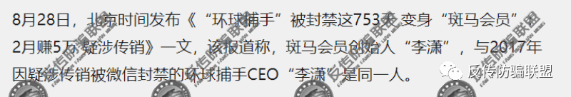 网络是有记忆的,实际上在过往的网络上,李潇本人与其经营公司的负面新闻并不少。2019年,中国经济网就曾报道过斑马会员的李潇就是环球捕手的CEO,而环球捕手因涉嫌传销被封早已是不争的事实。