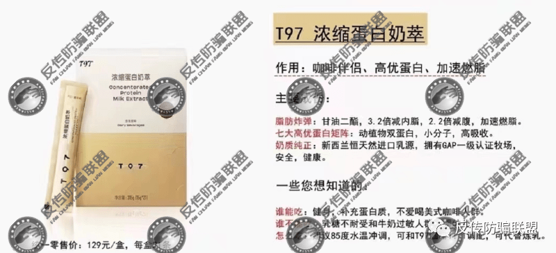 据推广者介绍,T97咖啡的理念是通过控糖、降低碳水吸收,从而减少葡萄糖的吸收,同时通过碎脂燃脂、吸油排油来加速脂肪的代谢,以达到不饿肚子、不大量运动的情况就能减脂的效果。