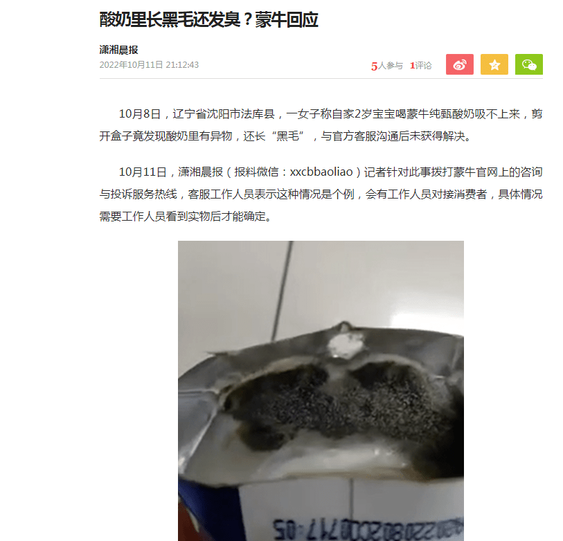 蒙牛酸奶里长黑毛 中国消费者何时能迎来安全的乳制品?