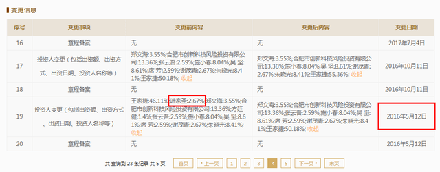 《壹财信》发现,叶加圣在科力信息的任职时间并不是结束在2013年10月。根据科力信息的工商登记信息,2018年2月12日,科力信息高级管理人员发生变动,叶加圣退出了高管名单,并且2016年5月12日科力信息发生了一次投资人变更。这次股东变更信息中,出现了一个名为“叶家圣”的股东,不知道是否和叶加圣为同一人。